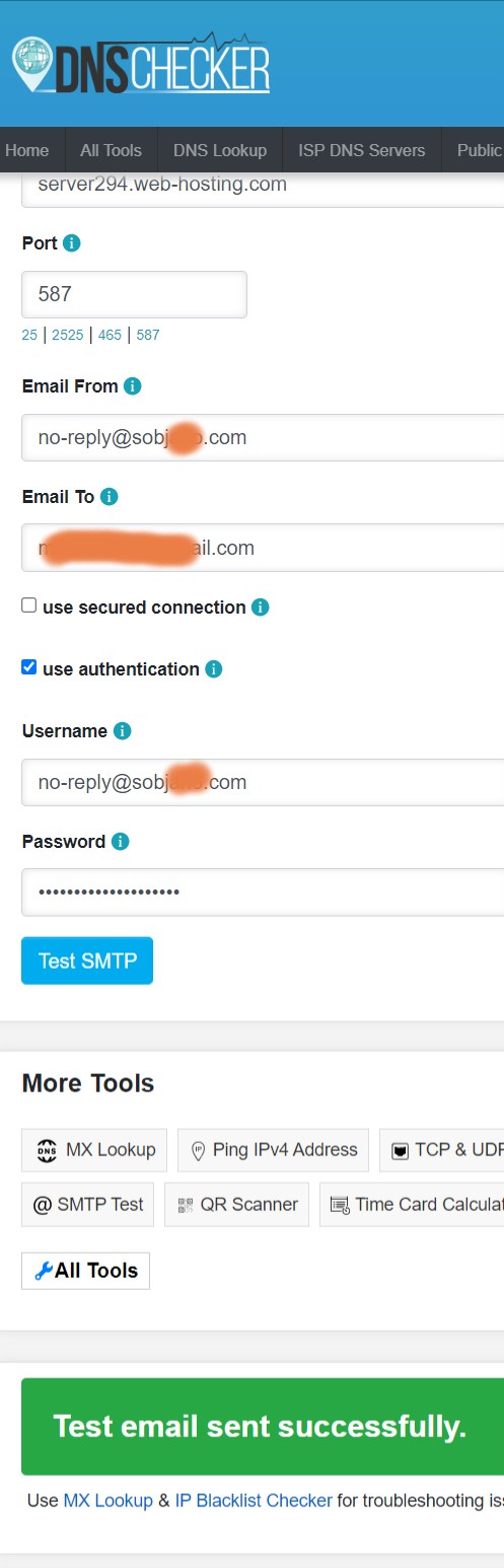 If that e-mail didn't appear in either your inbox or your spam folder, you need to talk to whoever operates server294.web-hosting.com and ask them about what happened to the e-mail you sent. Same if the test e-mail got through but other e-mail (for example registration notifications) didn't.