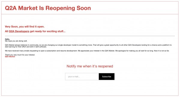 I would take a moment to apologize to everyone interested and believing in Q2A Market. Life for the past couple of years was alarming, and I also had to deal with much more things,