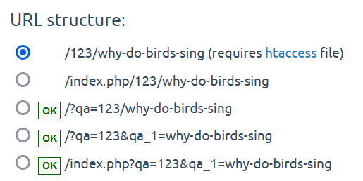 What should i do to have plain url structure (Defauld Q2A first option in general setting).