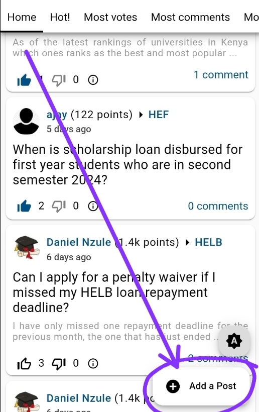Note that the "Ask a question" has been translated to "Add post" but it's the same.