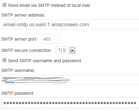 I am using Amazon Simple Email Service (SES) but after trying several combinations for the url (using tls://, ssl://, and leaving empty), I'm using port 465 and it works for other applications on my server using SES. I get a server error when trying a test of the feedback form (and notifications don't get sent when using the site). Is anybody using SES and successfully using it as an SMTP server.