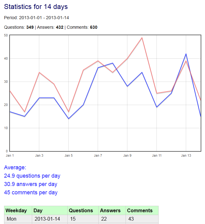 echo '<p style="color:#33F;font-size:20px;">→ Average: ' . round($sum/$countDays,2) . ' questions per day</p>';