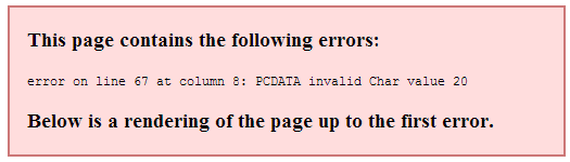 error on line 67 at column 8: PCDATA invalid Char value 20