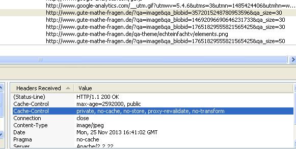 The http responses containing blobs ("special" php requests) should now be correctly handled by the qa-include/qa-blob.php that at line 55 forces the caching headers programmatically to allow browsers and proxies to cache the blobs.