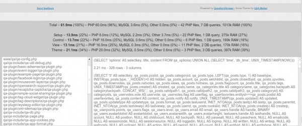 Answering this question again (I had commented already once above). If you want to see the list of all queries on a page then set the QA_DEBUG_PERFORMANCE property to true in qa-config.php. This will output performance and MySQL query related information at the bottom: