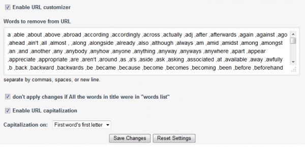 Great Plugin. Thank you very much for you for published very useful free plugin and also thank Dave for his excellent idea. I really want to use this plugin and before that I have a problem, If I will add this plugin will it change my previous questions URLs? Is there any option to use this plugin for selected questions only? And what is the mean of "Enable URL Capitalization? Thanks again.