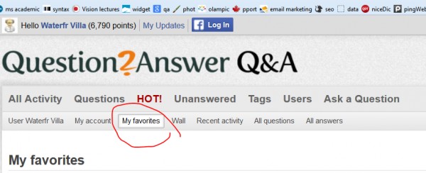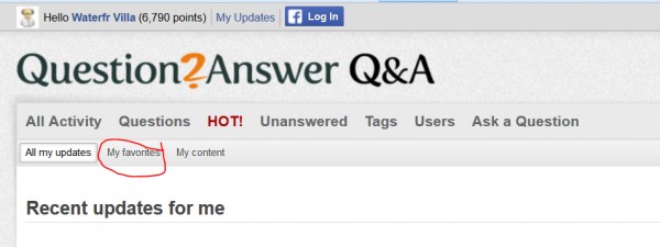 My favorites in "My updates" ---> a list of *recent* updates (for instance, here: the recent updates done in the category "Q2A Core", that is a list of questions)
