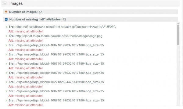 I think the tool is incorrect in this case. The alt attribute for most of the images (the avatars) is there, but it is set to blank. Blank alt attributes are perfectly valid HTML, as explained here: