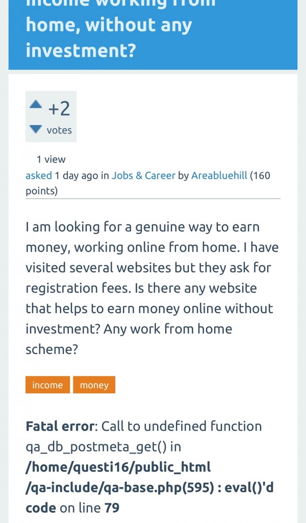 Try uncommenting the code in qa-base.php on line 594 (the one above the eval() call). That will output the plugin code that is being executed.