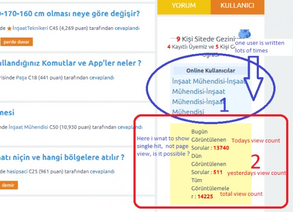 secondly, I want to see today's and yesterdays total hit, not total page view. when it show total page views, there will be lots of numbers. how can we do that?