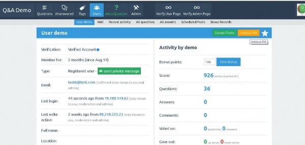 For USER-LEVEL demo: https://gyzgyn.com/q2a-demo