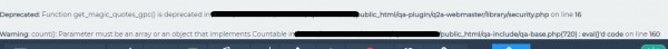 Warning: count(): Parameter must be an array or an object that implements Countable in public_html/qa-include/qa-base.php(720) : eval()'d code on line 160
