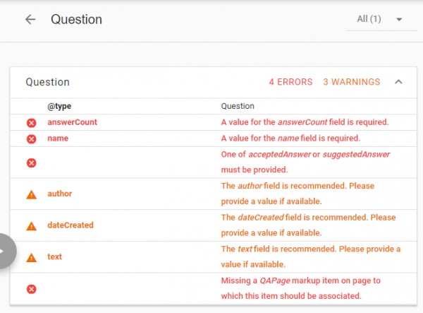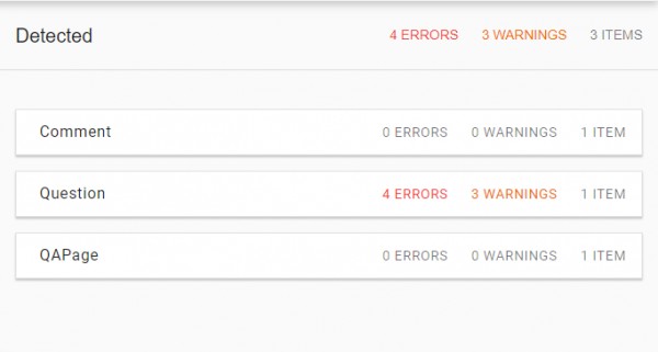 I am testing my site for schema.org implementation. I tested my one question page on google structured data testing. The question I tested has 1 answer, 2 comments, and 1 selected answer as the best answer.