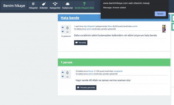 How can I show the user a popup message after the user adds a reply? We can use the kernel hacking method.