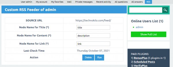 This is a premium paid plugin that imports contents posted in other web sources via rss url feed. It is tested on qa 1.8.0. PM me if you interested, for price and payment options.