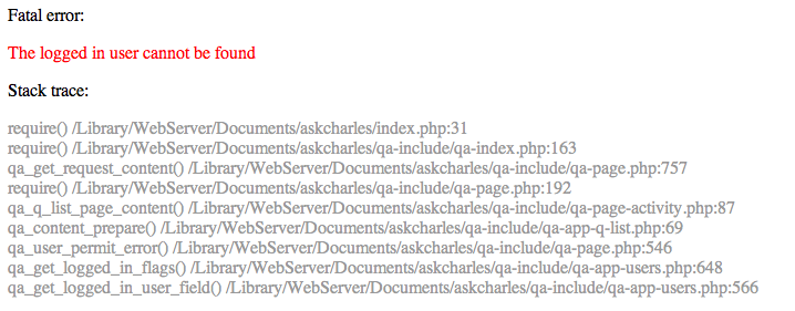 It should only happen to a user who has been deleted. You can see what's generating this error in qa-app-users.php and, if you prefer, change the code to redirect back to the front page.