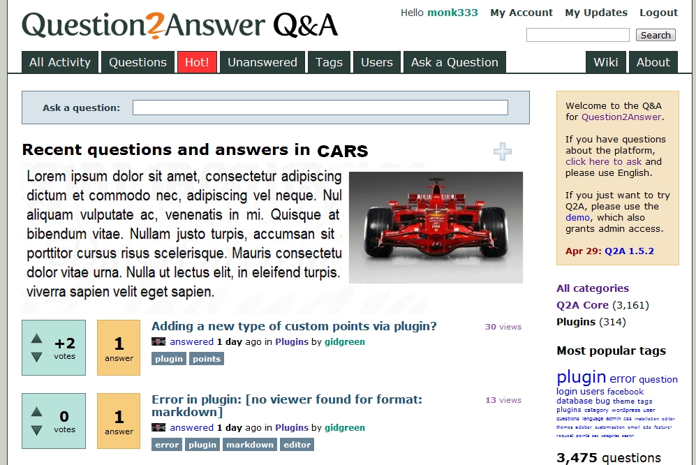 Welcome to the Question2Answer Q&A. There's also a demo if you just want to try it out.