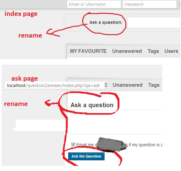 You can edit these files to rename everything that you see on q2a pages.
