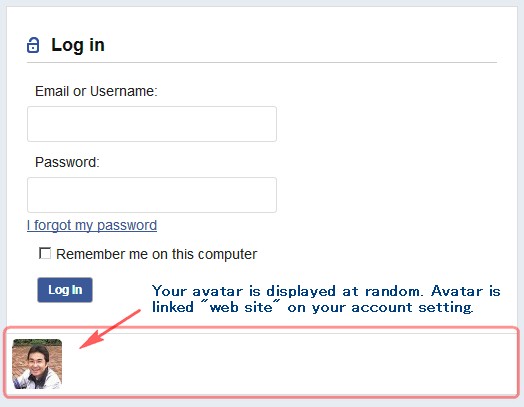 I developed "Random Users Widget" plugin.This plugin displays user's avatar/handle/fullname at like position. In my site, display on login page. Avatar/name is linking "Web site" on user's account. Only users who desired display by "Agree display avatar at xxx page" of account page is displayed on widget.