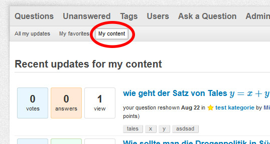 When a user published a question and someone answered, the user gets updated about the answer at "my content":