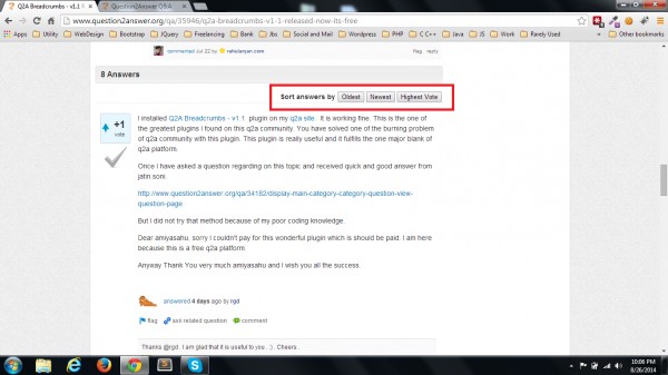 Or maybe a simpler example, if the core is configured to sort by date and the most voted answer of a question is not in the first page, then I wont' see it if the plugin is set to sort by highest votes.