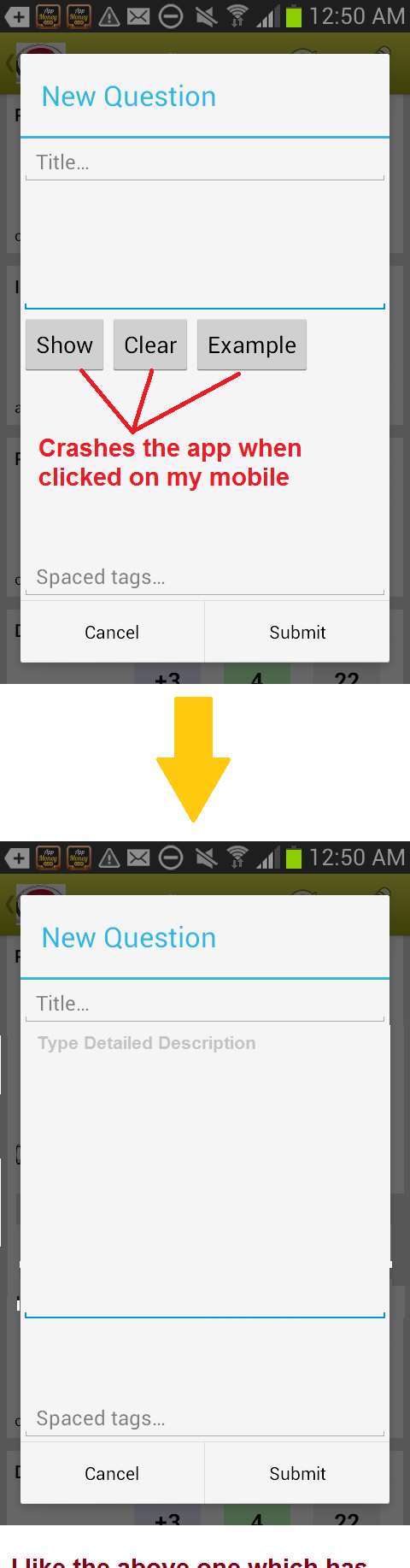 If it is possible then include the sign up/join form otherwise mention the app users to create an account at ιнaveѕolved.coм. I'm using tags seperated by comma but in the App it mentioned space so change it for me. I can pay you if you want money.