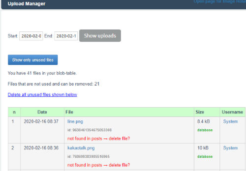 https://github.com/q2apro/q2apro-uploadmanager is a good plugin that we can see list of images which are used in profile , question etc.