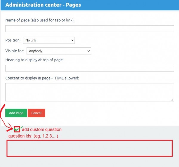 I'm also want one more field to enter the question ids if we click on check box -> add custom questions.